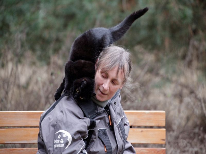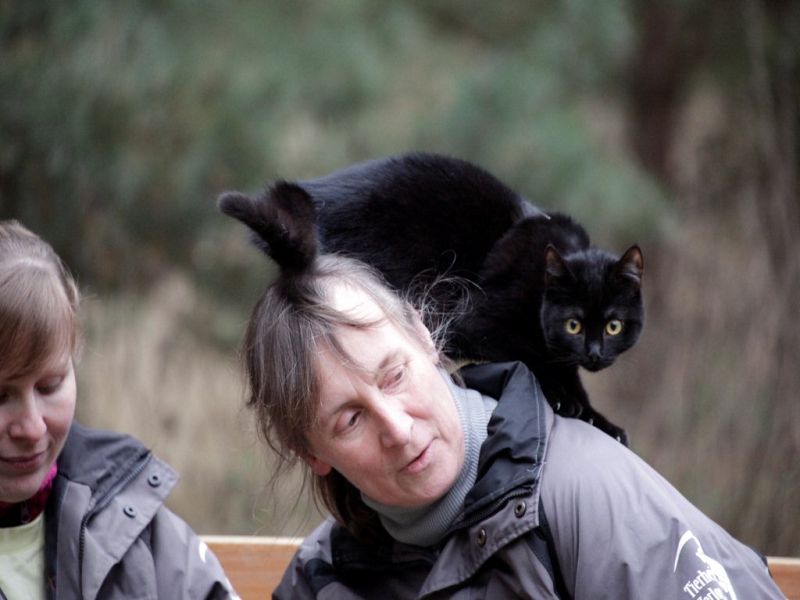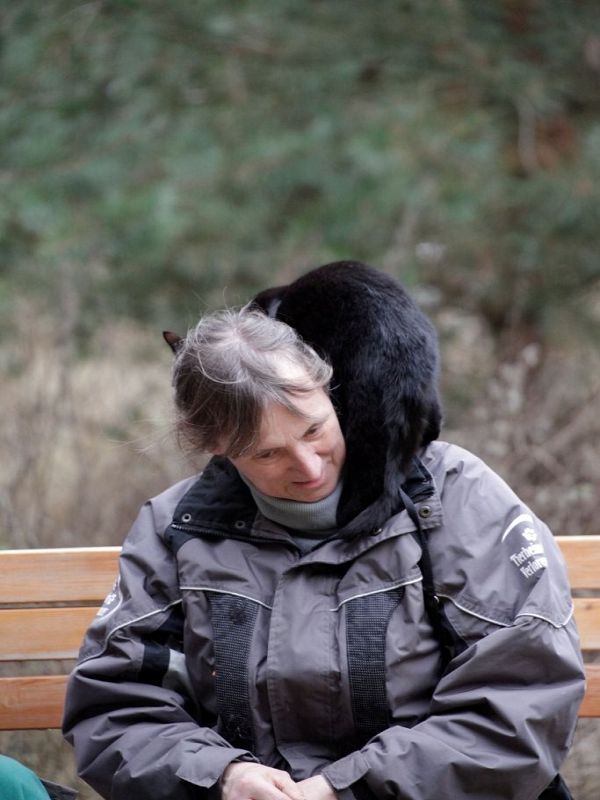 Sie nutzte die Dreharbeiten zu einer ausführlichen Schmusestunde mit unseren Tierpflegerinnen Gabi und Katrin.