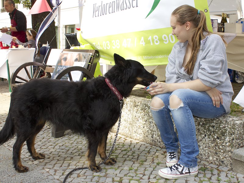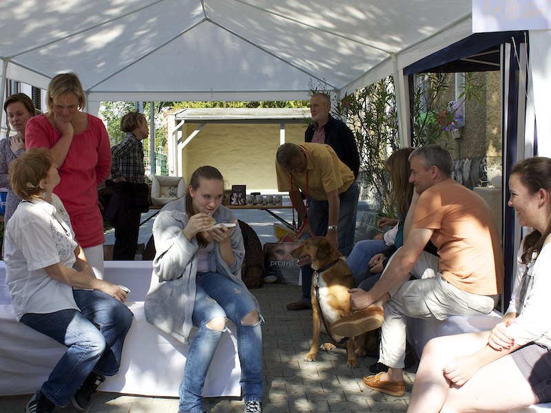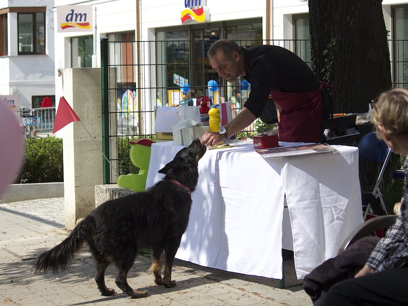 In der Breisgauer Straße 7 befinden sich ein Tierbedarfsverkauf und eine Tierarztpraxis. Sie veranstalteten ein kleines Straßenfest und erlaubten uns, unser Tierheim auf einem Infostand vorzustellen. Wir freuten uns, sogar einige Ehemalige von uns wiederzutreffen. Mariella ist unternehmungslustig wie eh und je, wie uns ihr Frauchen vorführte. Auch Nori konnten wir entdecken.
