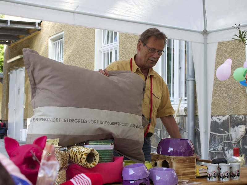 Besonders eifrig war unser kleiner grauer Schnauzer Herr Lehmann. Gemeinsam mit seinem Herrchen leitete er eine Auktion zugunsten unseres Tierheimes. Doolittle's hatte wunderschöne Preise dafür gestiftet sowie einen Kuchenbasar organisiert. So konnte unser Tierheimleiter mit einem dicken Umschlag ins Tierheim zurückkehren.