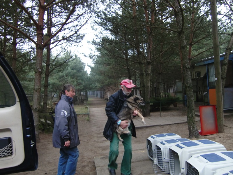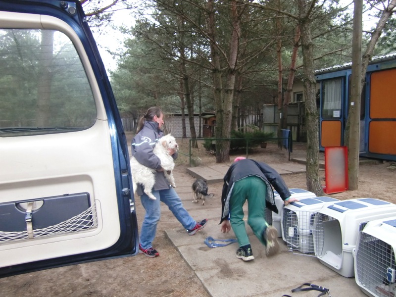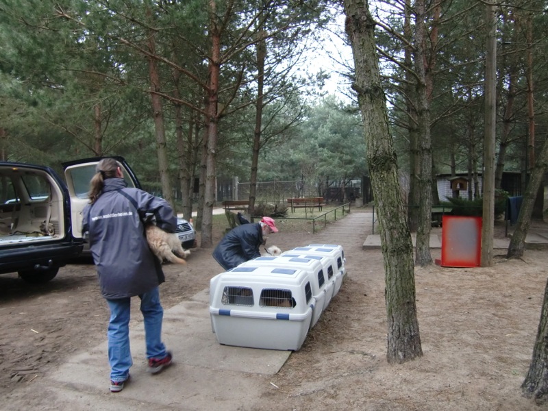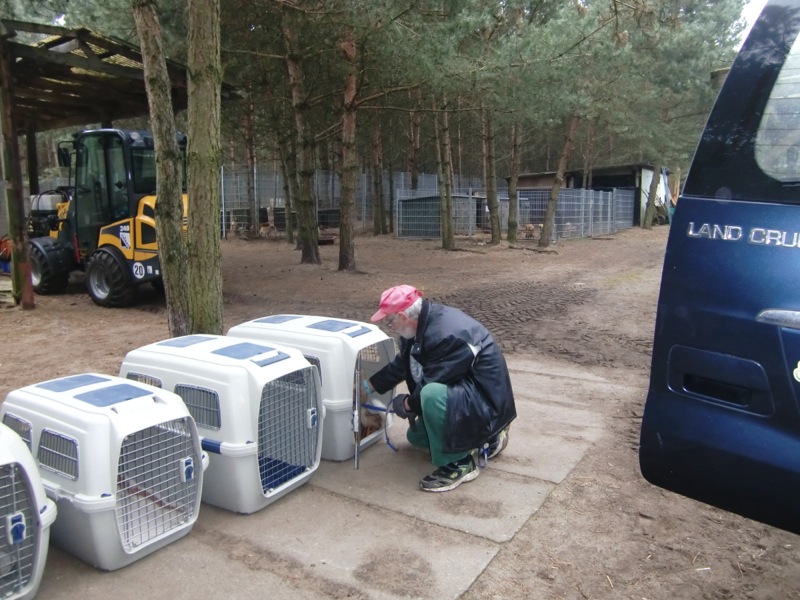 Und da wir kein größeres Transportfahrzeug mehr haben - es ist seit Jahren irreparabel kaputt - mussten wir wie schon so oft unsere Ehrenamtler um Hilfe bitten. Harriet und Detlef waren sofort wieder zur Stelle, so dass wir alle Hunde einladen konnten.