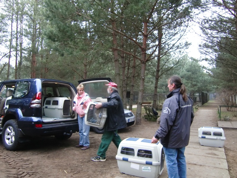 Nach 18 Uhr war dann endlich alles geschafft und es ging wieder zurück nach Verlorenwasser, wo alle gegen 20 Uhr eintrafen. Dort warteten noch die anderen Tierpfleger: Ausladen, Allgemeinzustand und Verbände kontrollieren, vorsichtig Wasser geben, trösten und kuscheln.
