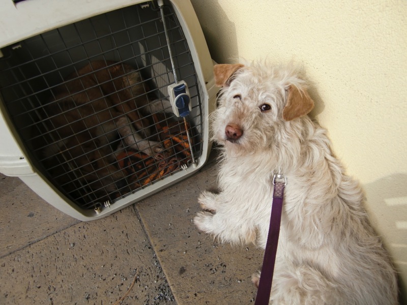 Morgens um 6 wurden die Tiere vorbereitet. Nicht jeder hatte Freude daran. Ulla versuchte noch einmal zu entwischen - und auch Ferris und Miro waren wenig angetan von der Box. Aber es half ja nun mal nichts.