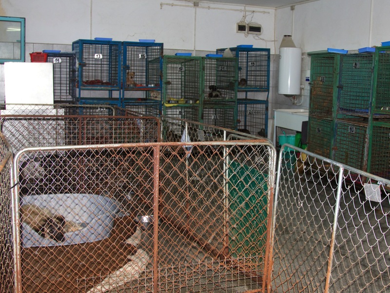 In einem weiteren Raum waren Quarantäne-Boxen - sowohl mit Katzen als auch Hunden (fast ausschließlich Welpen). Leider hatte es ein Welpe nicht geschafft, er hatte den Kampf um sein Leben verloren - wie so viele andere schon zuvor.