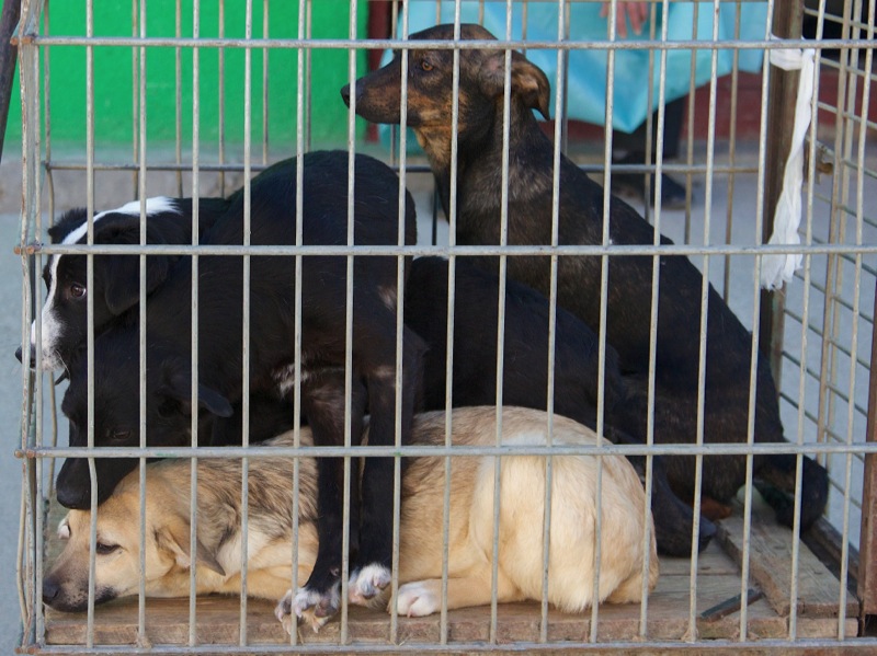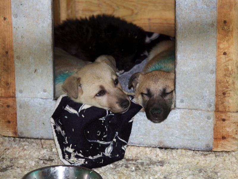 Überall auf dem Gelände der SMEURA stehen Hundehütten, die liebevoll mit Decken ausgelegt sind.
