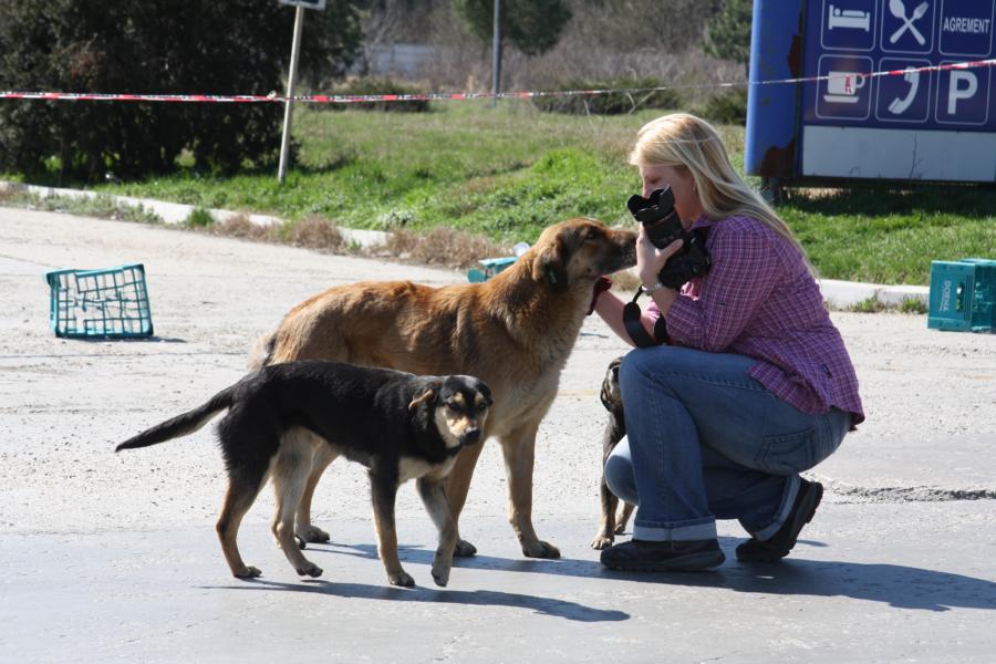 Die älteren Hunde, die sich frei bewegen dürfen, genießen den Kontakt mit den Mitarbeitern.
