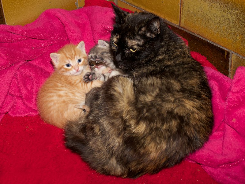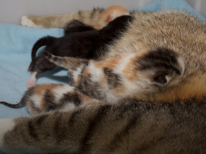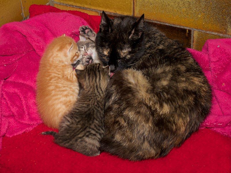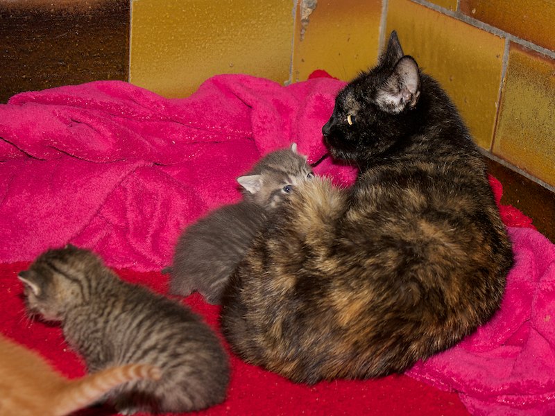 Oftmals kommen die Muttertiere krank und angeschlagen von der Straße oder aus schlechter Haltung zu uns. Unsere Tierärztin und unsere Mitarbeiter müssen dann mit viel Einsatz versuchen, was nur irgend geht. So wird auch oft zugefüttert, damit es alle schaffen.