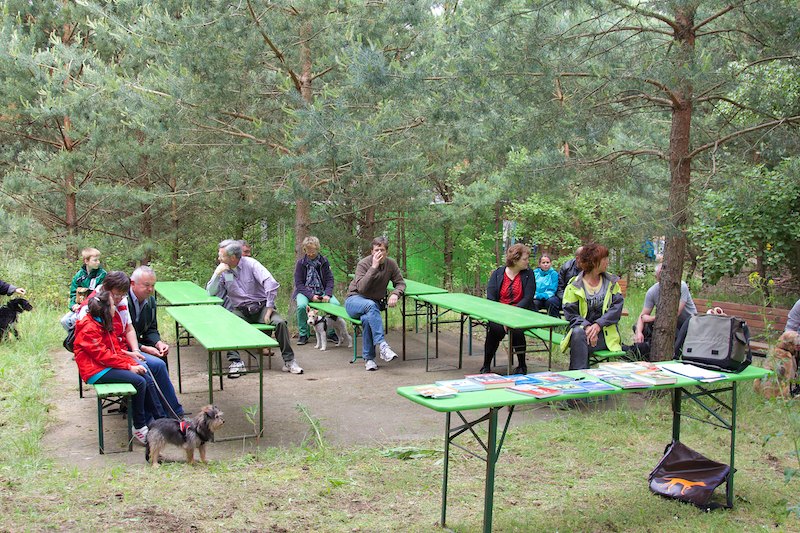Marie-Luise Zopf aus Berlin-Zehlendorf von der Hundeschule Komm-mit-Hund beantwortete Fragen. Natürlich durften Themen wie "Halsband oder Geschirr?", "Leinenruck - vertretbar oder schon Tierquälerei?", "Zweithund - ja oder nein?" nicht fehlen.