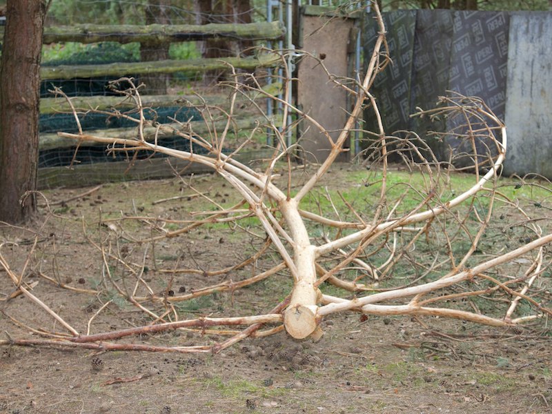 Und so sieht die Kiefernspitze nach nur wenigen Tagen aus. Unsere Ziegen haben sie völlig nackig gemacht.