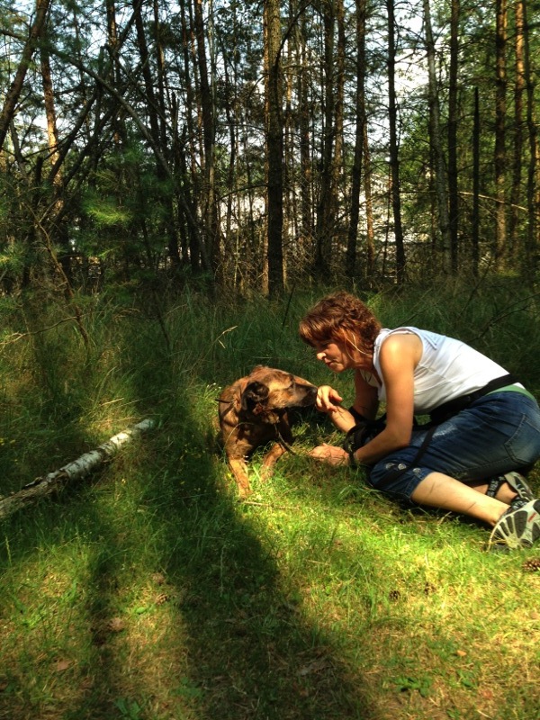 Insbesondere arbeitet sie mit den ängstlichen Hunden. Auch dank Simones Hilfe sind z.B. Bikos und Bonni viel aufgeschlossener und offener geworden, als sie es bei ihrer Aufnahme im Tierheim anfangs waren.