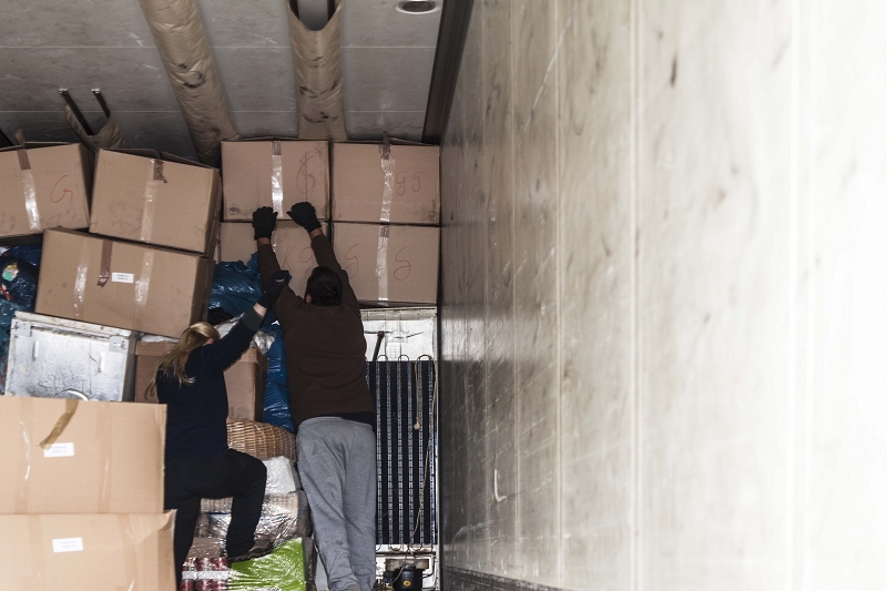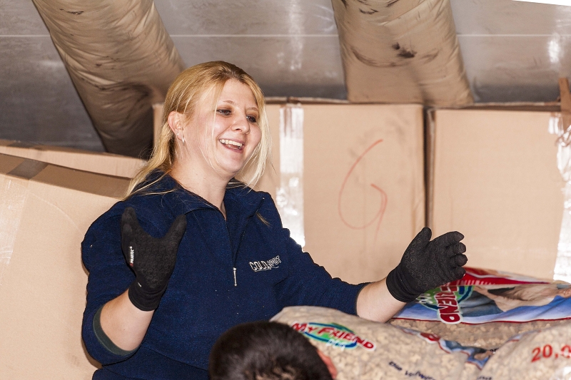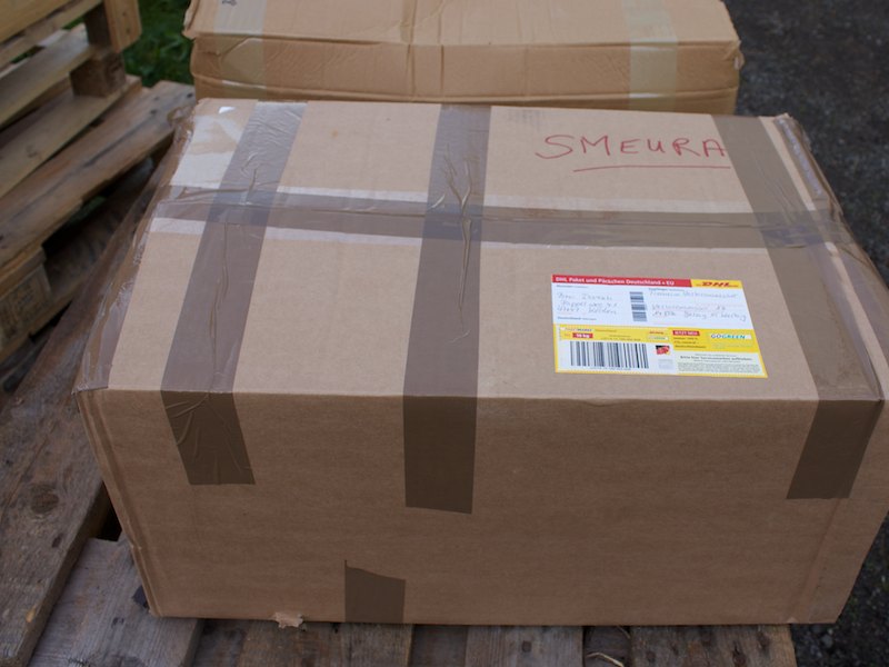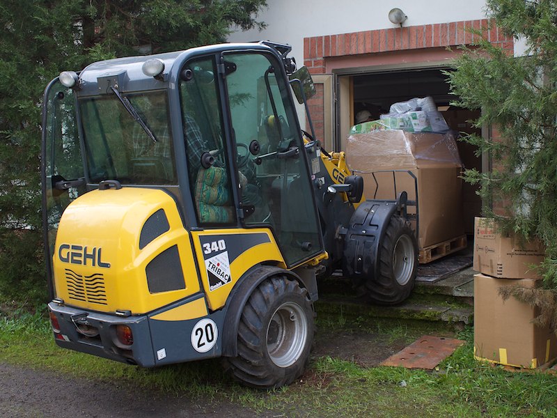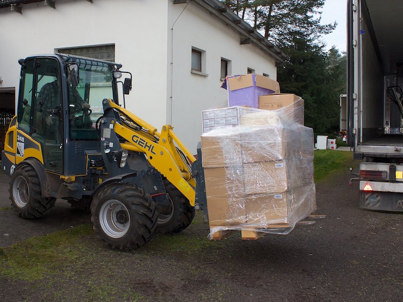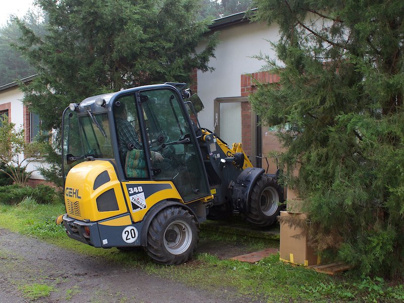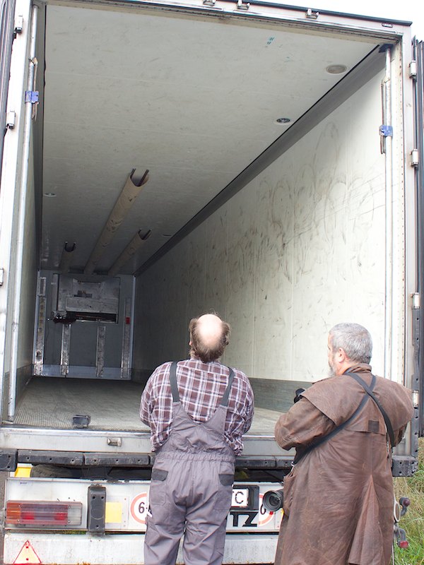 Nach ein paar Stunden anstrengender Verladearbeiten taten den Helfern die Knochen wieder tüchtig weh, denn einige Paletten mussten aufgelöst und neu verstaut werden, weil der LKW-Fahrer die Achsen anders beladen haben wollte.