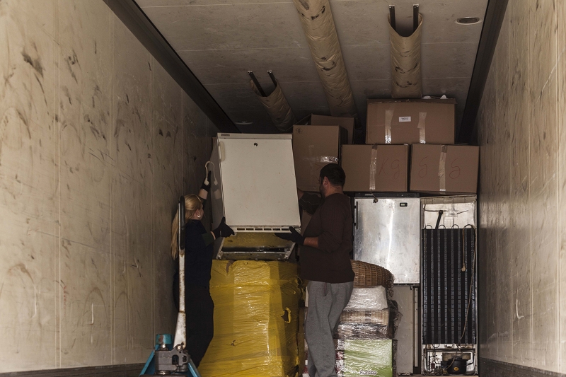 Auf dem LKW befinden sich 22 Tonnen an Fracht. Damit könnte man so manche Wohnung komplett übermannshoch zustellen.