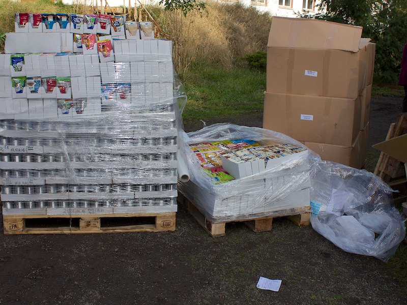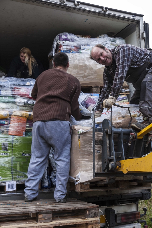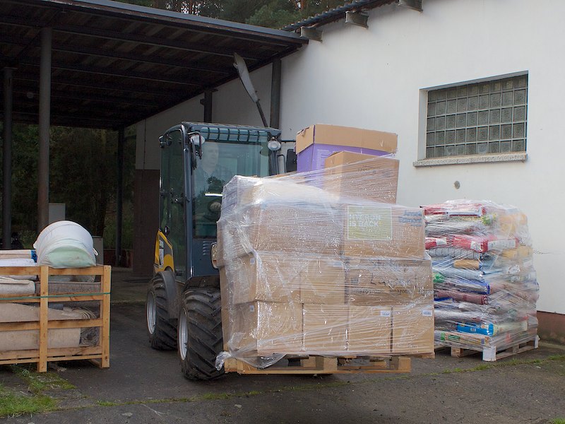 Vier Paletten haben vom Gewicht her nicht mehr auf den LKW gepasst. Wir nehmen sie als Grundstock für den nächsten Transport und hoffen wieder auf so vielfältige Unterstützung.