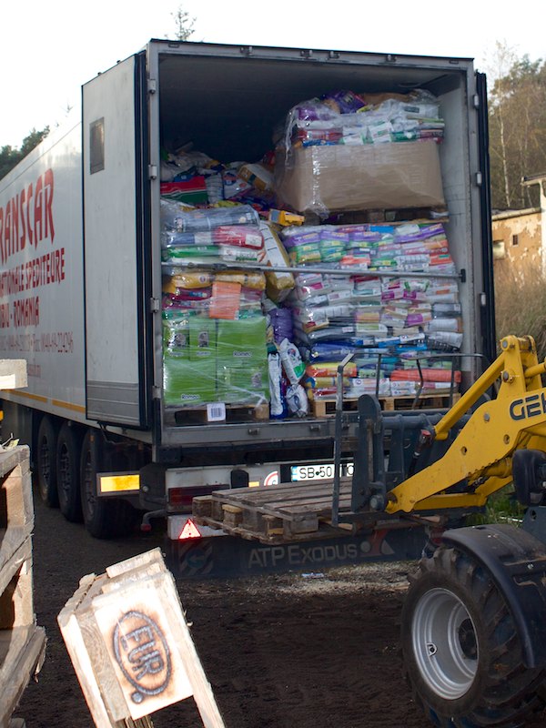 Der LKW mit Futter- und Sachspenden ist seit Freitagnacht, 31.10., auf dem Weg zur SMEURA.