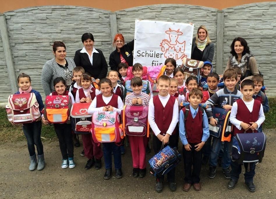 Dabei nehmen sie Schulranzen mit, die sie den Kindern schenken. Meist haben die Schüler keinen, sondern nur Einkaufstüten. Entsprechend groß ist die Freude über so einen Ranzen, selbst wenn er gebraucht ist.