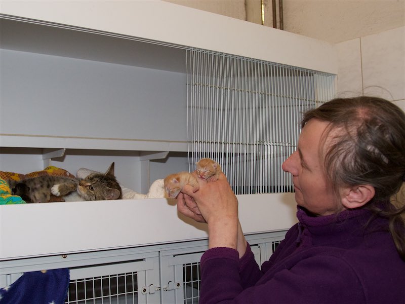 Unsere Jungkatzen stammen von Straßenkatzen, die nicht rechtzeitig zur Kastration bei uns abgegeben wurden. Wir versorgen die Mütter und Kitten, bis sie kastriert werden können. Alle Jungkatzen gehen danach in die Vermittlung. Die Mütter versuchen wir zu sozialisieren und dann ebenfalls zu vermitteln. Wenn sie so wild sind, dass alle Versuche fehlschlagen, gehen sie kastriert an den Auffindeort zurück.