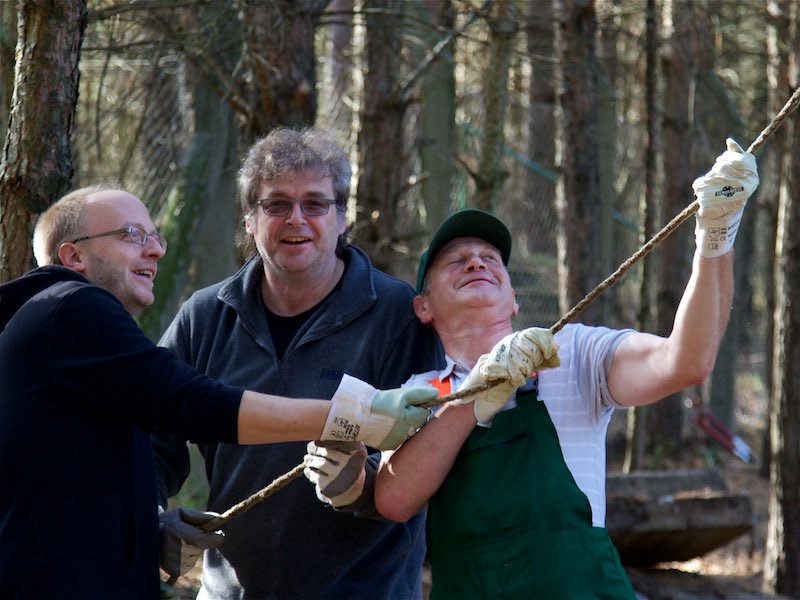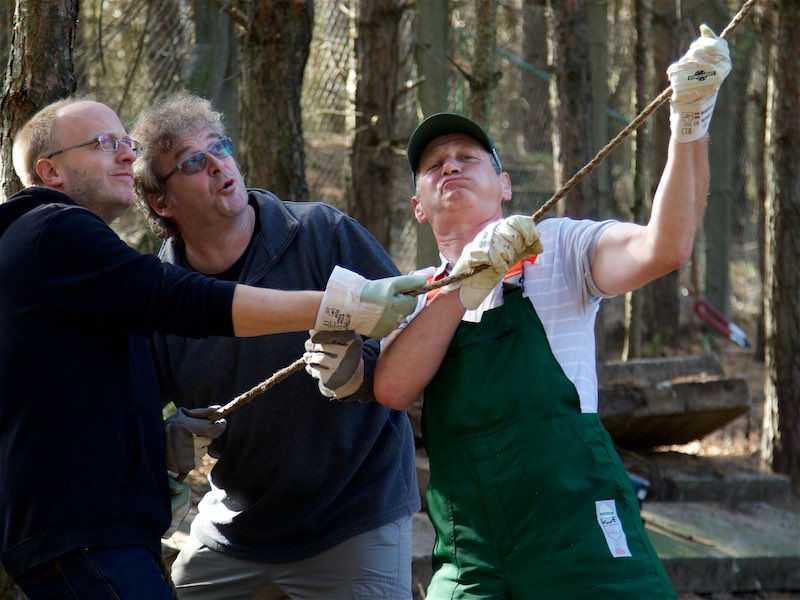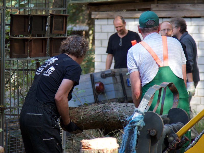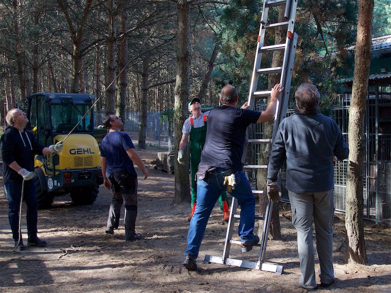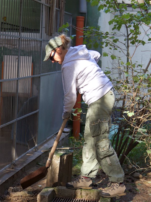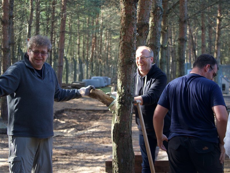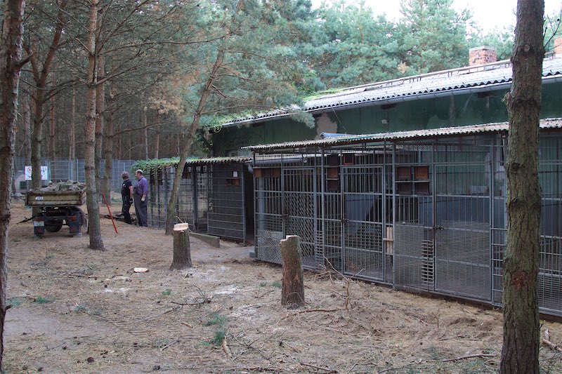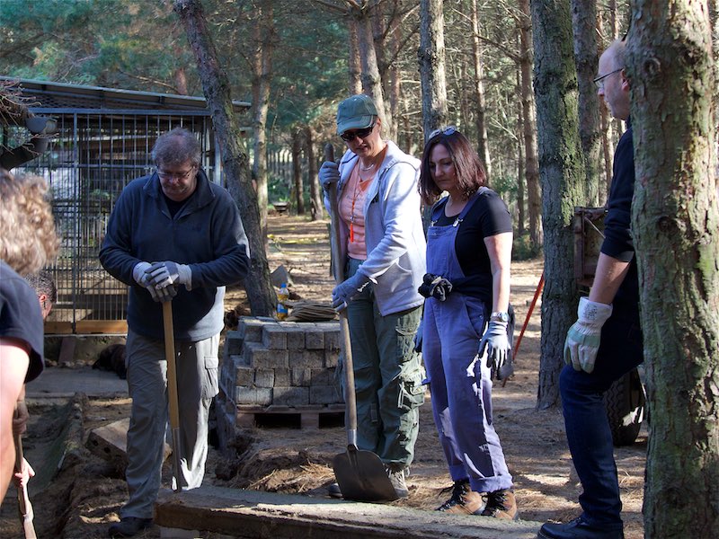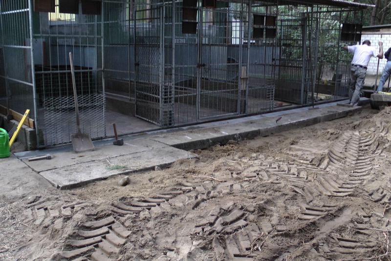Die Fällarbeiten und Stubbenrodungen waren schon anstrengend genug, aber der Härtetest waren die Betonplatten. In den Zwingern mussten teilweise die Böden getauscht werden. Die Wasserrinnen waren auf ganzer Länge marode und mussten erneuert werden. Der Untergrund musste geebnet und verdichtet werden - und dann die zentnerschweren Platten wieder neu verlegt werden.