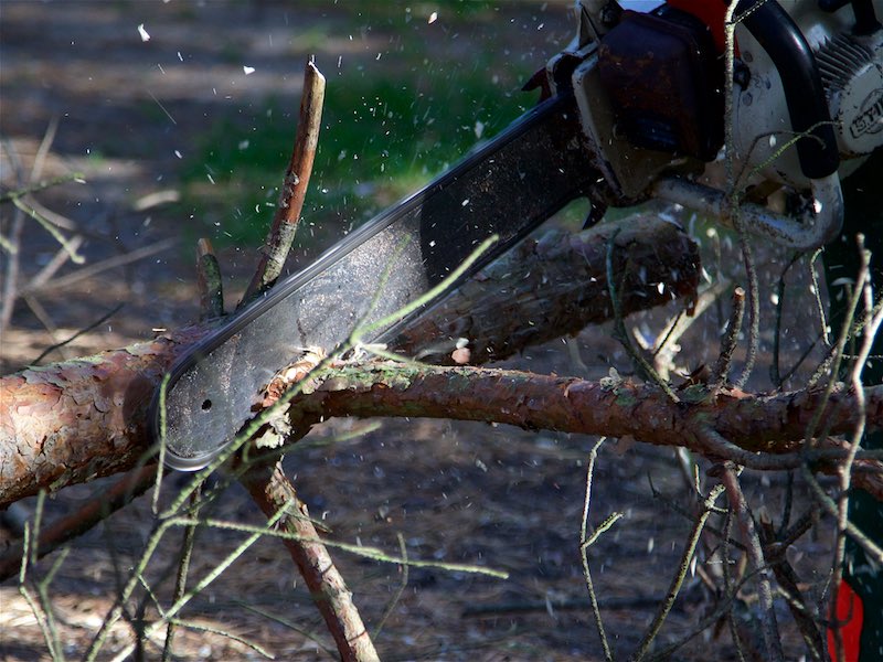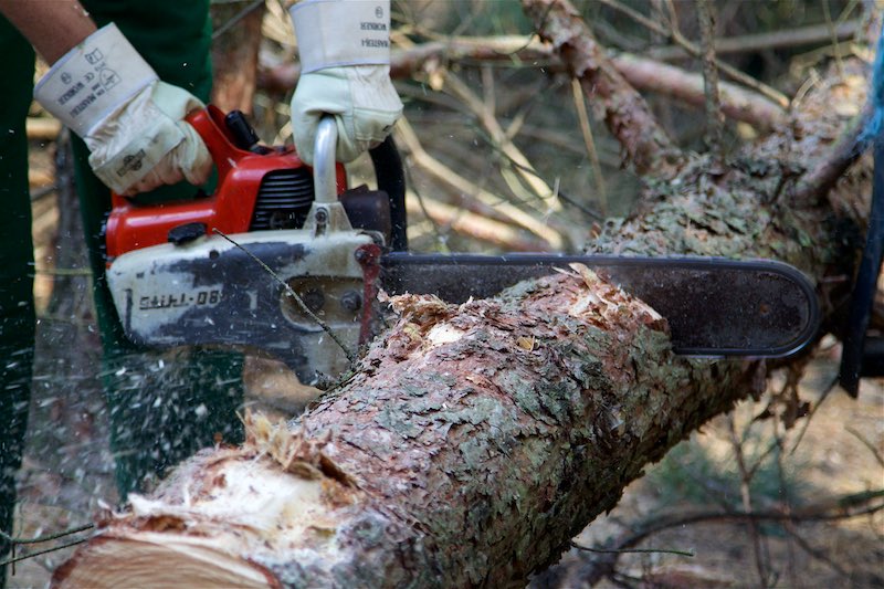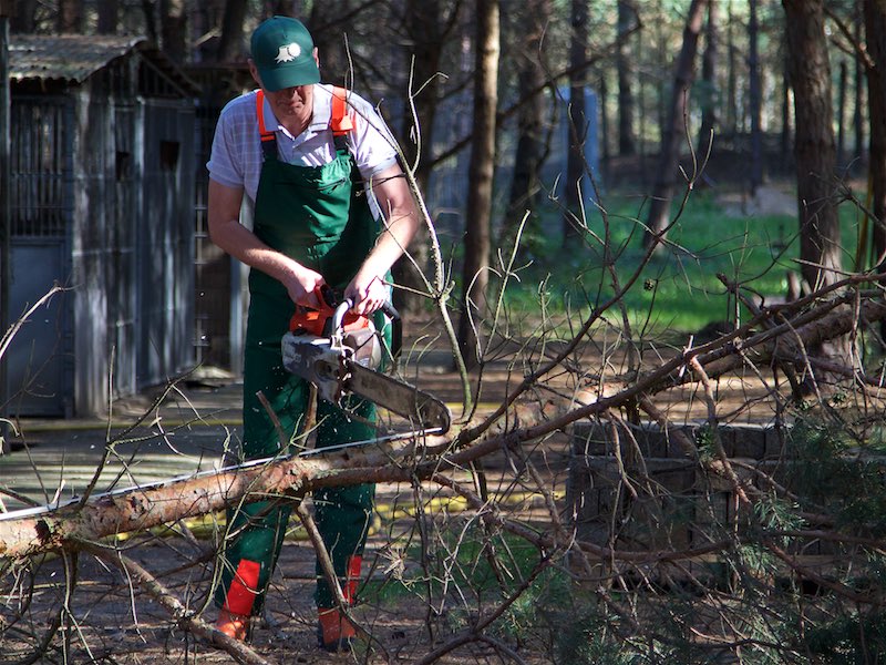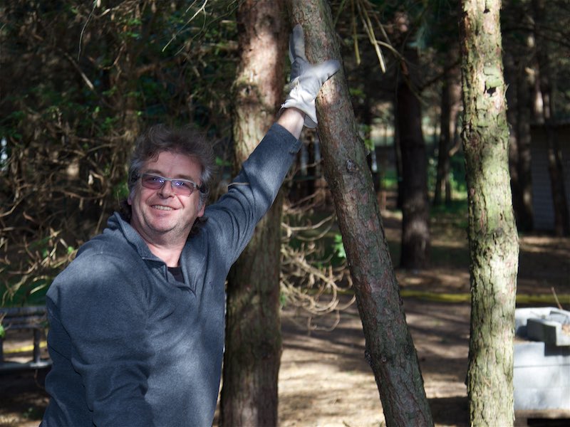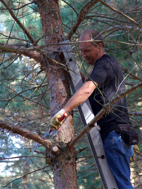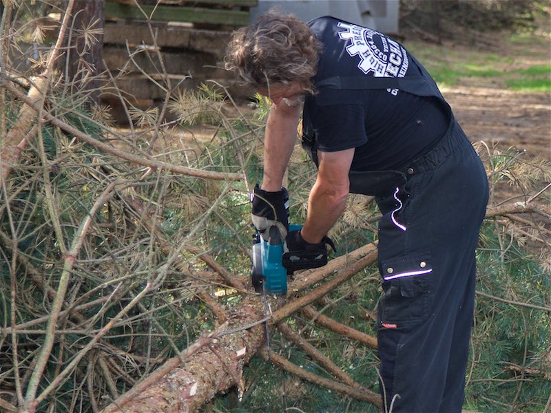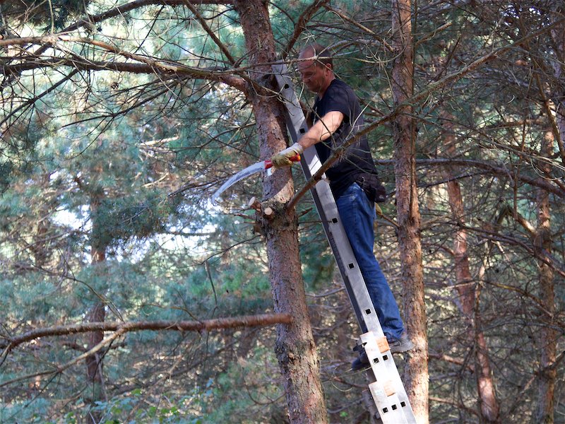 Totholz musste aus den Bäumen entfernt werden. Etliche Bäume mussten gefällt werden. Sie waren völlig trocken oder standen viel zu schräg und gefährdeten das Gebäude.