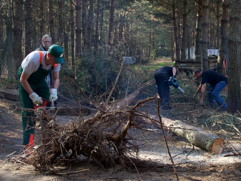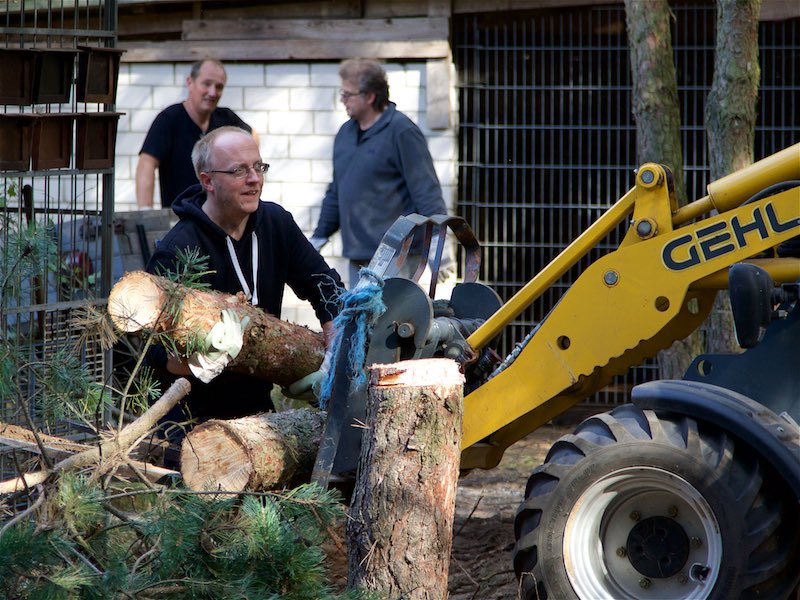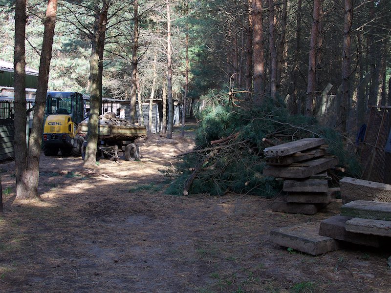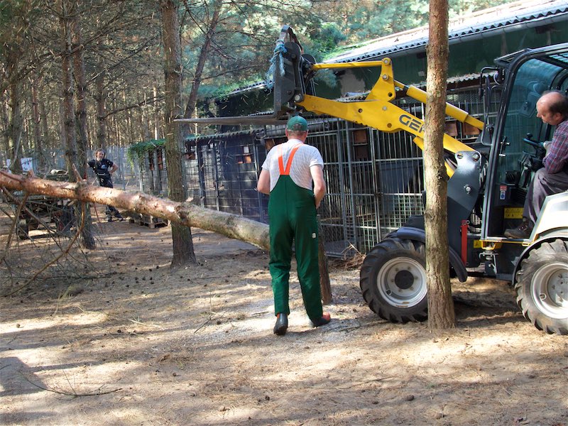 Einige Kiefern hatten mit ihren Wurzeln aber auch die Gehwege und Gehegeböden angehoben, so dass etliches gebrochen war.