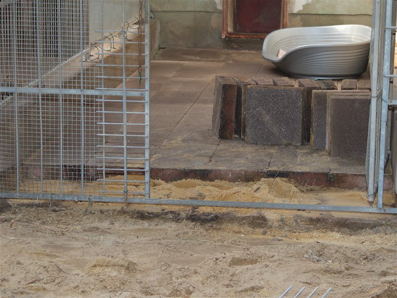 Aus Kostengründen wollten wir ursprünglich selbst Betonrinnen gießen - aber damit wären wir nie fertig geworden. Unser Tierheimleiter hatte fertige Rinnensteine besorgt, die schön ordentlich aussehen und letztendlich auch nicht teurer geworden sind.