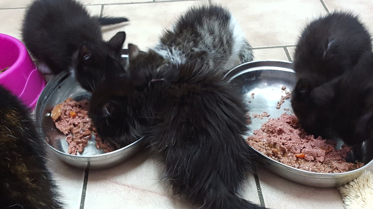 Die ersten Pakete sind inzwischen leer gefuttert. Von den Geldspenden können wir aber noch nachkaufen und dann auf Erwachsenenfutter umstellen.