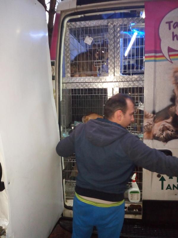 Das Fahrzeug einer professionellen Tiertransportfirma war sehr gut ausgestattet und alles war sauber. Drei Fahrer kümmerten sich um die Tiere. Sie luden sie auch selbst aus und trugen sie in unsere Gehege. Alle Hunde waren doppelt gesichert mit Halsband und Geschirr.