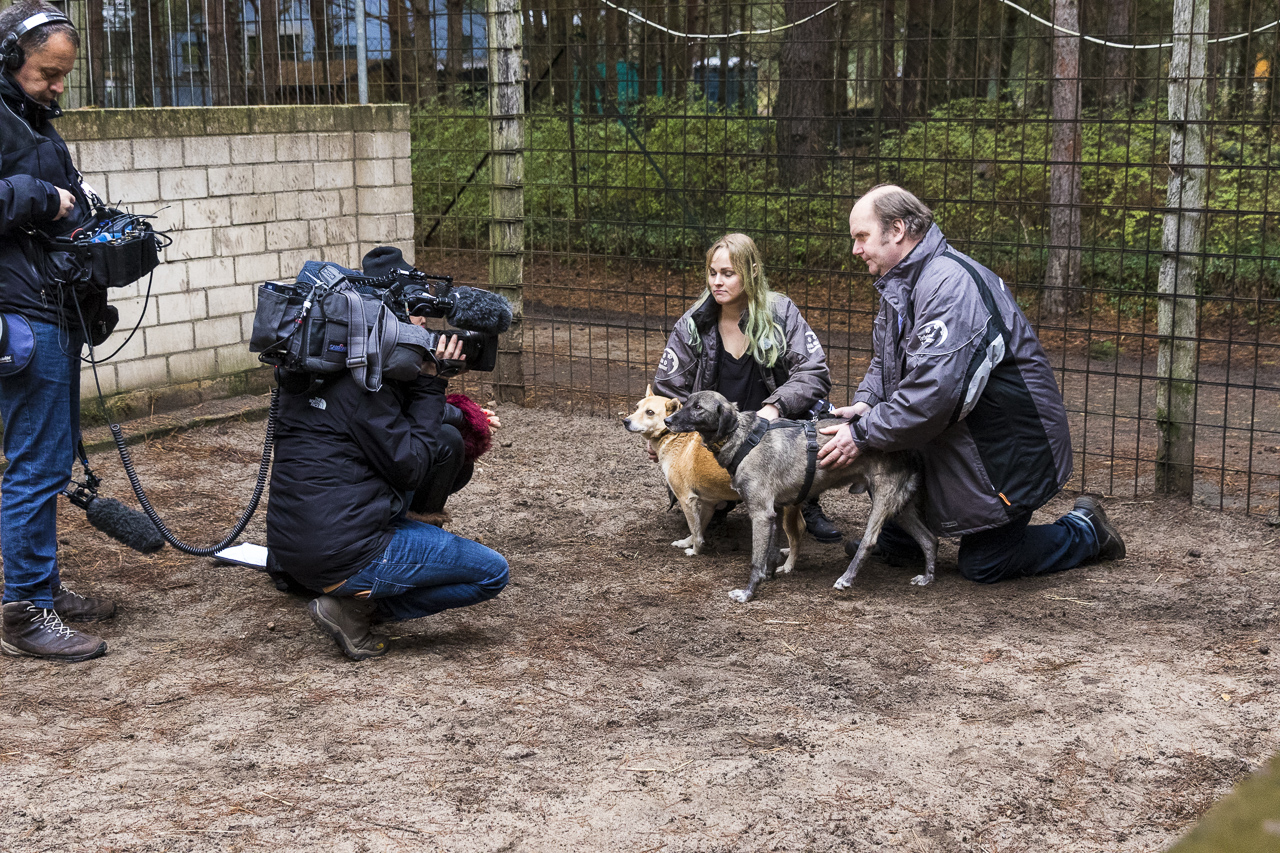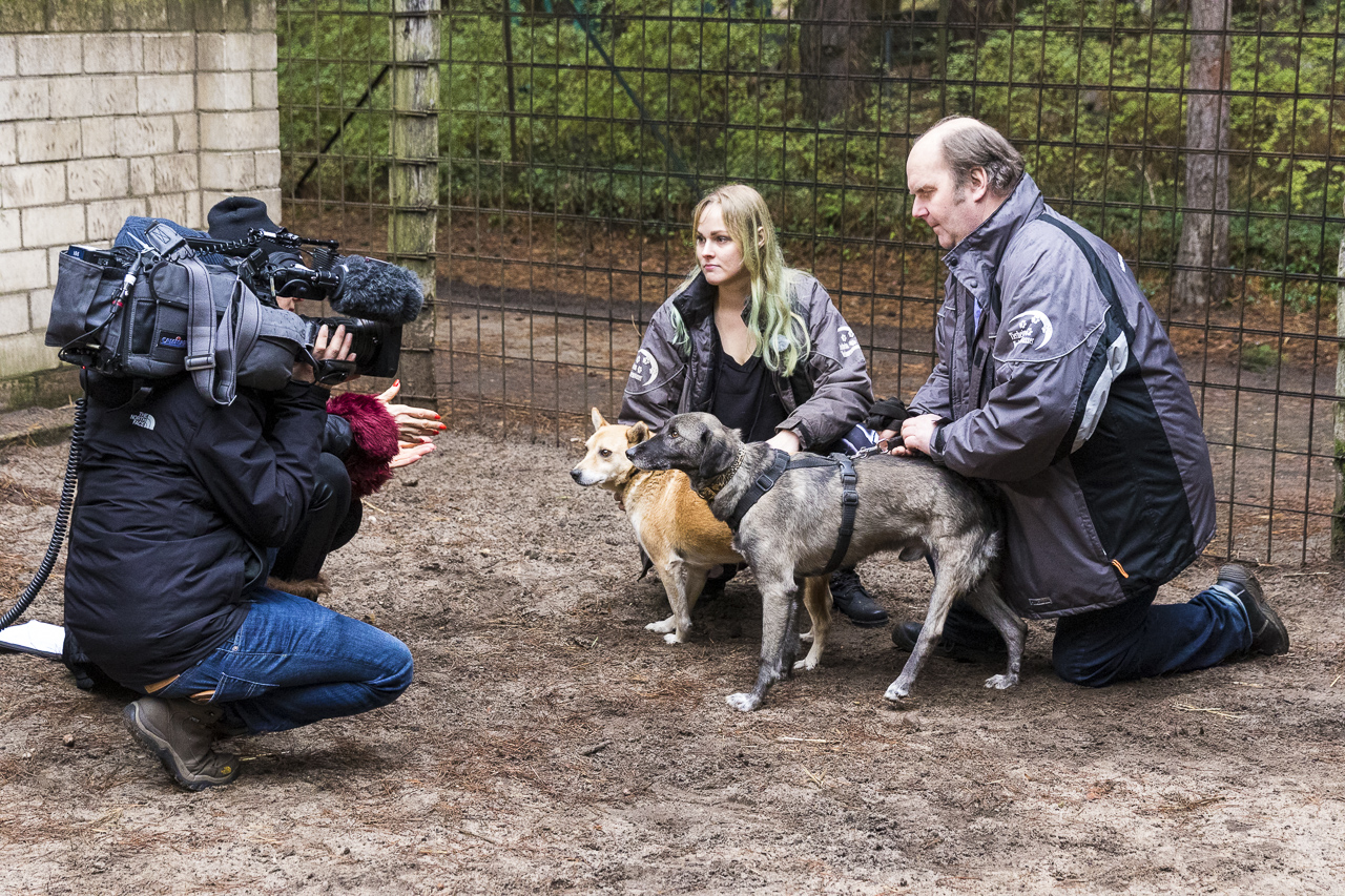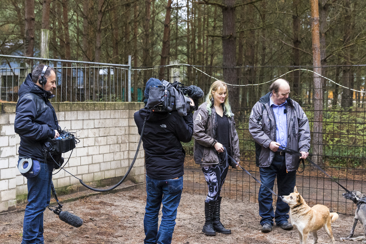 Hier schon mal einige Impressionen vom Dreh. Vor der Kamera sind Ehrenamtlerin Caro, Tierheimleiter Wolfgang Aland sowie eine Familie, die sich für Sunshine als Zweithund interessierte.