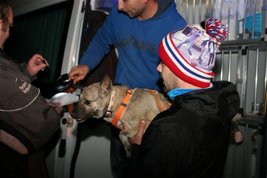 So war es schon dunkel, als das Fahrzeug eintraf. Trotzdem muss dann natürlich die Aufnahmeprozedur sein. Chip mit Impfpass und Transportliste abgleichen, erster Gesundheitscheck und Test, wer mit wem zusammen wohnen kann. Zwei Tage später dann noch die Untersuchung vom Tierarzt, was den meisten Tieren auch unheimlich ist.