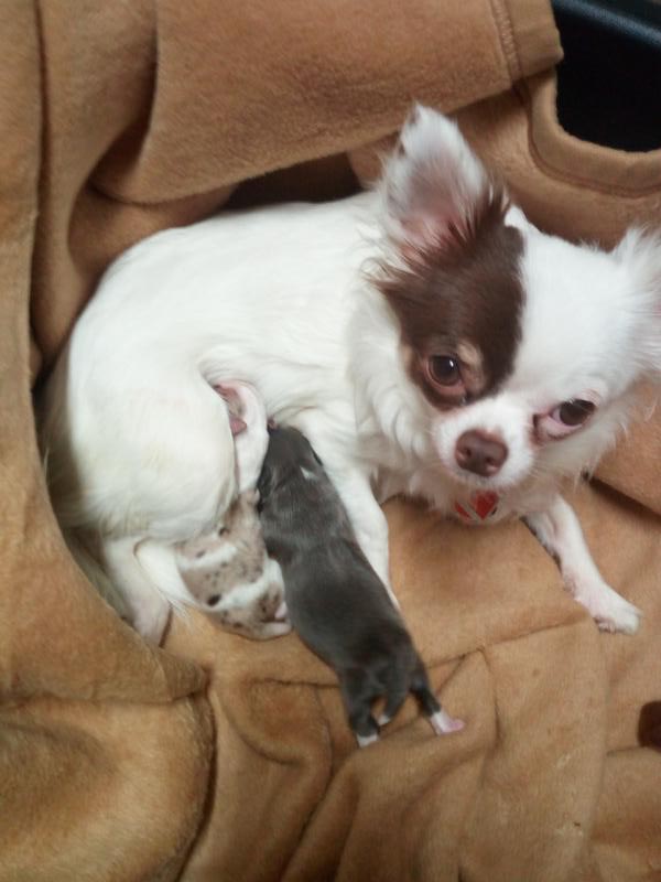 Die frischgebackene Mama war allerdings überfordert mit dem Ergebnis des Liebesabenteuers. Ihre Welpen bekamen nicht genug Milch, verkühlten und starben zum Teil. Da die Besitzerin der Hündin große Angst hatte, dass die verbliebenen zwei Mini-Welpen ebenfalls sterben würden, gab sie uns die Gruppe zur Aufzucht.