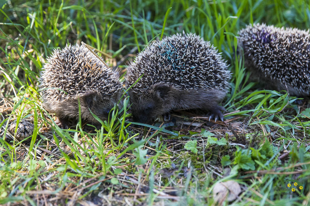 Wer die Fotos genau betrachtet, entdeckt unterschiedlich farbige Stachelspitzen bei jedem Igelchen ?. Das sind Farbmarkierungen, die unsere Tierpfleger angebracht haben, damit wir die Tiere unterscheiden und individuell versorgen können.