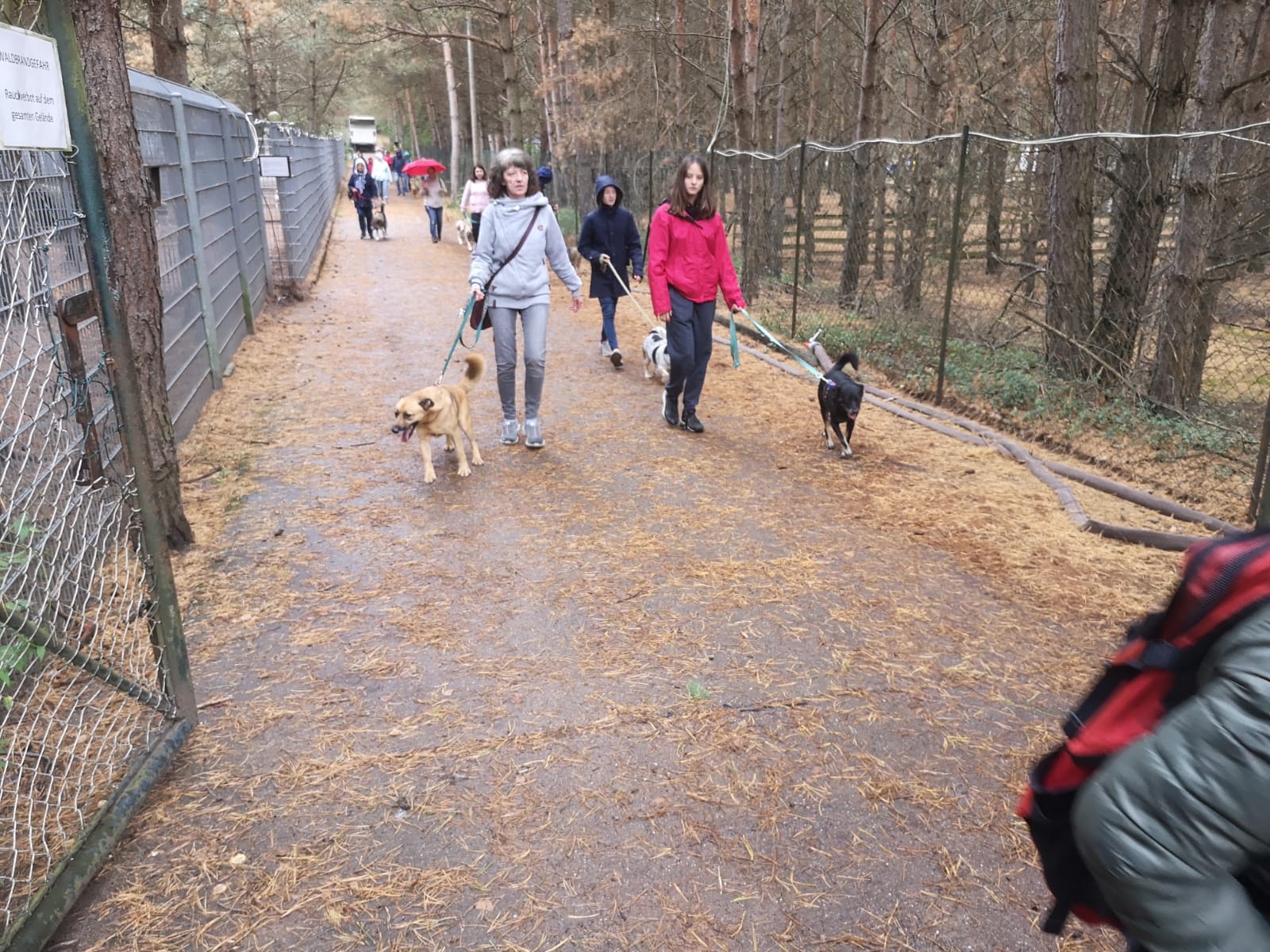 12.45 Uhr: die Gruppe kommt beim Treffpunkt für die Pause an; unser Tierheimleiter stellt Stühle und Bänke auf. Alle wollen sich schnell hinsetzen, damit die Sitze nicht vom Nieselregen nass werden.