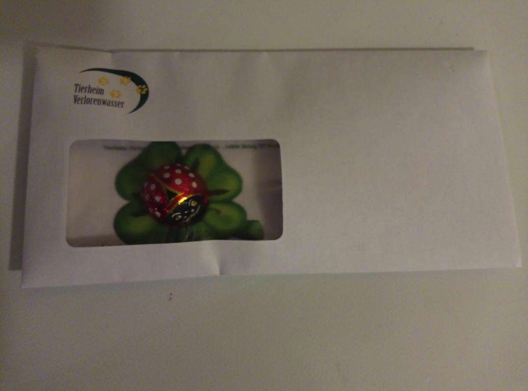 Wir legten jedem Brief einen kleinen Schoko-Glückskäfer bei. Es waren noch welche übrig vom Jahresbeginn, als wir für jeden Mitarbeiter und einige Ehrenamtler Tütchen gebastelt hatten mit vielen Glücksbringern für 2020 darin.
