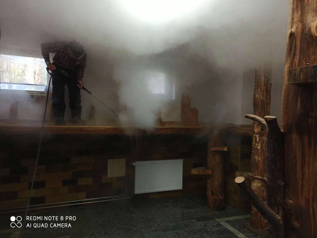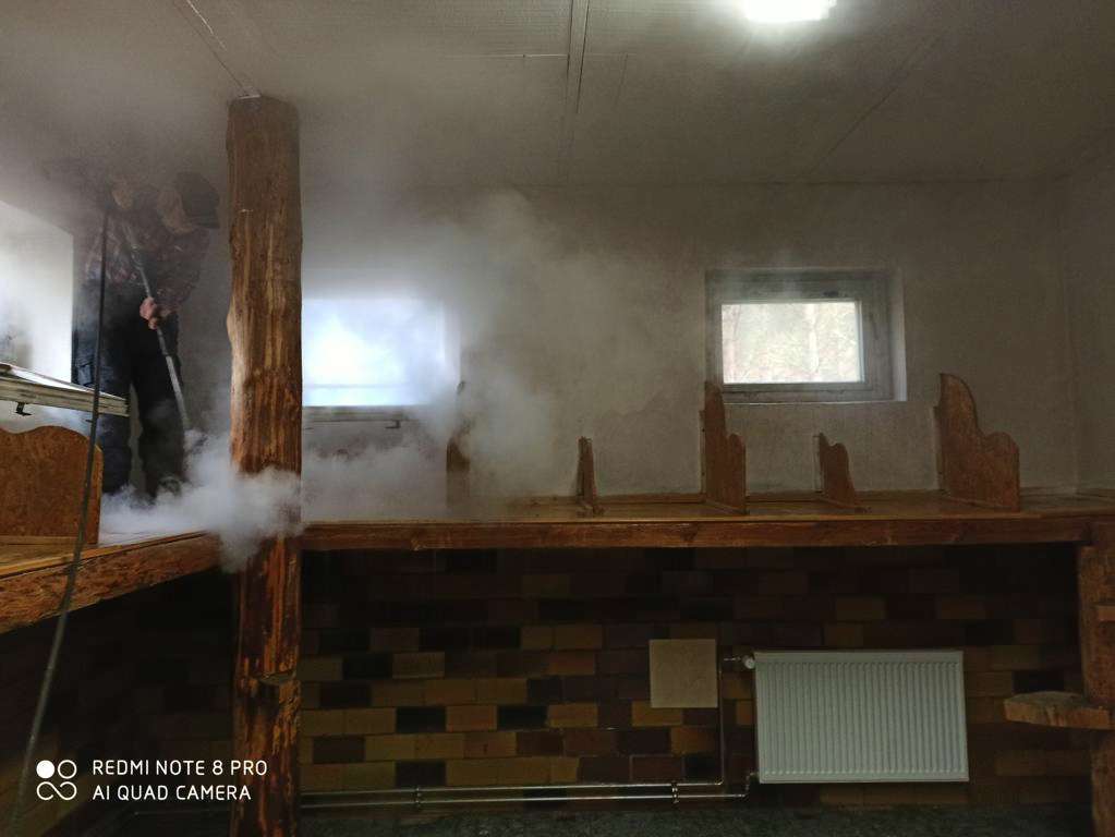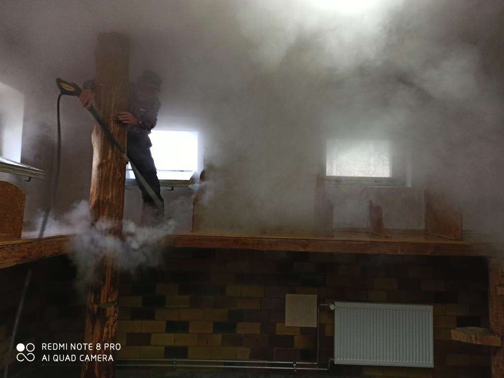 Was auf den Fotos so aussieht, als ob der 2.Teil des Horrorfilms "Nebel des Grauens" gedreht wird, ist nur unser Siggi, der mit einem Hochdruckreiniger und Heißdampf jedem Keim zu Leibe rückt.