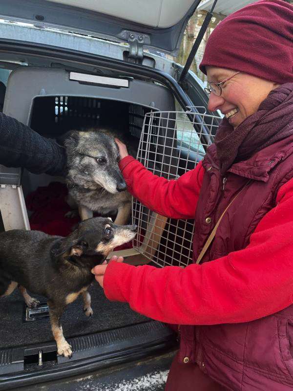 Am 1. Weihnachtsfeiertag erschien die Interessentin für Hero mit ihrer kleinen Hündin. Diese fand Hero ganz ok – und auch Hero schien einverstanden – wenn auch wie immer sehr ängstlich. Er konnte ja nicht ahnen, was für eine schöne Zukunft vor ihm liegt.