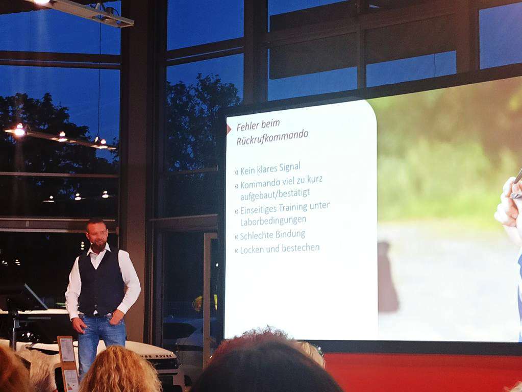 Britcars in Teltow lädt seine Kunden mitunter zu interessanten Sonderveranstaltungen ein. Diesmal war André Vogt der Gastreferent - bekannt aus dem Fernsehen als "Der Welpentrainer".