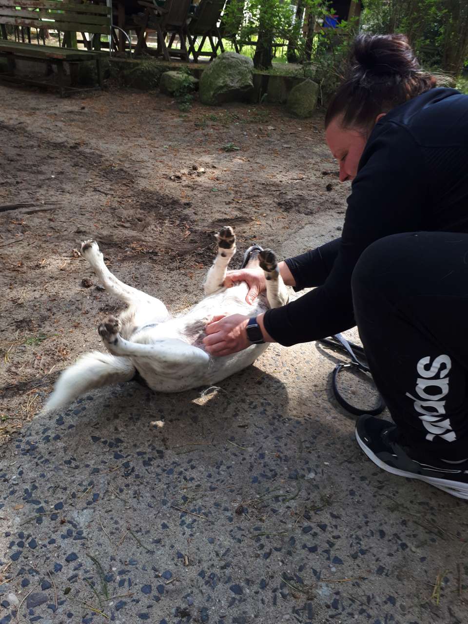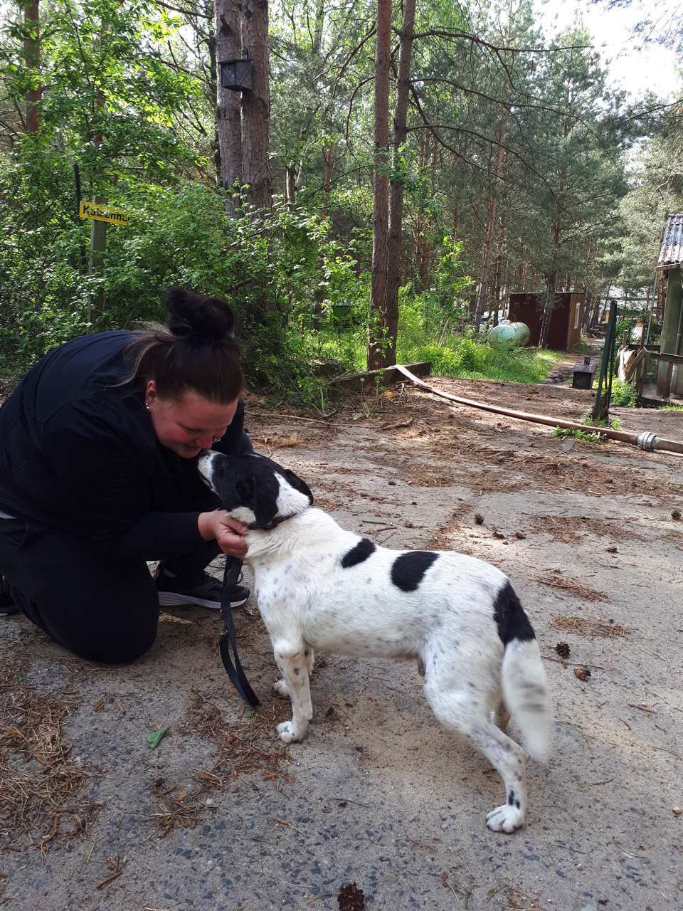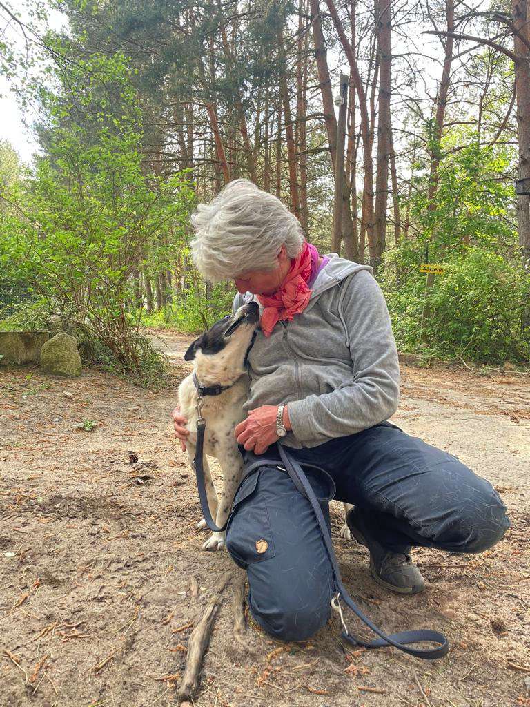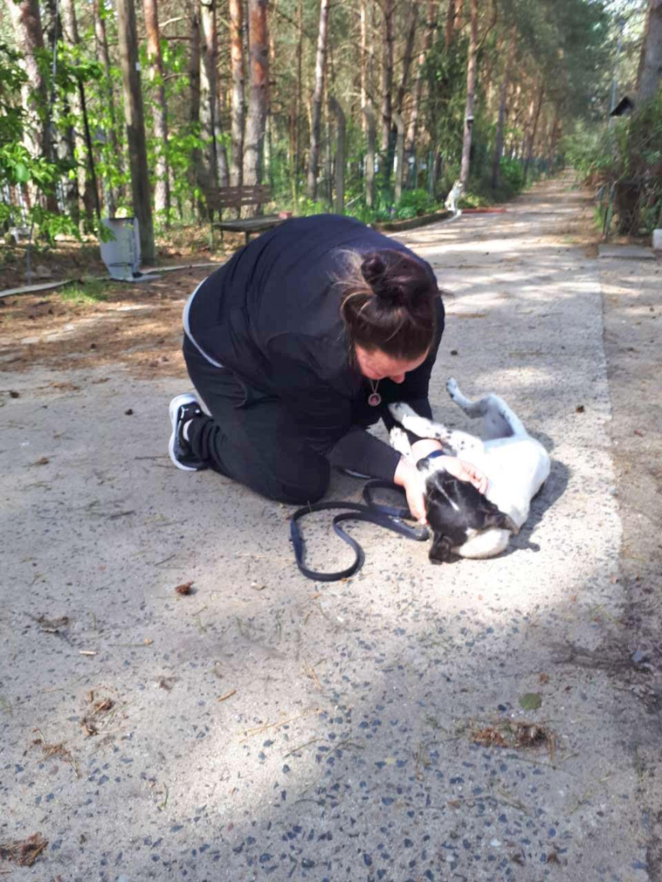 Blossek hat das Vertrauen in die Menschheit nicht verloren. Wie man auf den Fotos sieht, liebt er es zu schmusen und mit seinem Menschen zu spielen. Er ist laut Papieren 8 Jahre alt, aber wir schätzen ihn älter. Blossek wiegt 15 kg. Er fährt gern und entspannt Auto. In Berlin beim Tierarzt hatte er mit der Stadt und den Geräuschen kein Problem.