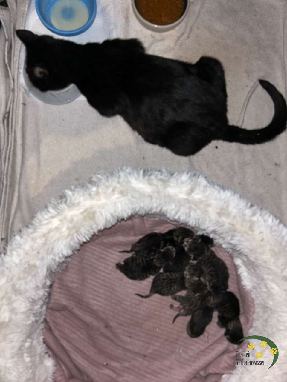 Wir fuhren mit der Kätzin zum Ultraschall, weil wir Totgeburten befürchteten. Doch die Tierärztin gab Entwarnung: alle lebten, aber es sollten sieben oder acht Babys sein. Sie hatten schlicht und einfach keinen Platz mehr, sich viel zu bewegen.