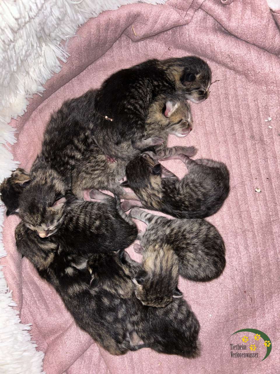 Urspünglich sollten es 15 Katzen sein. Doch obwohl wir noch am selben Tag die Aufnahme zusagten, dauerte es noch ein paar Tage, bis bei den Ämtern alles koordiniert war und die Polizei den Einsatz begleiten konnte. Inzwischen waren 8 der Katzen verstorben.