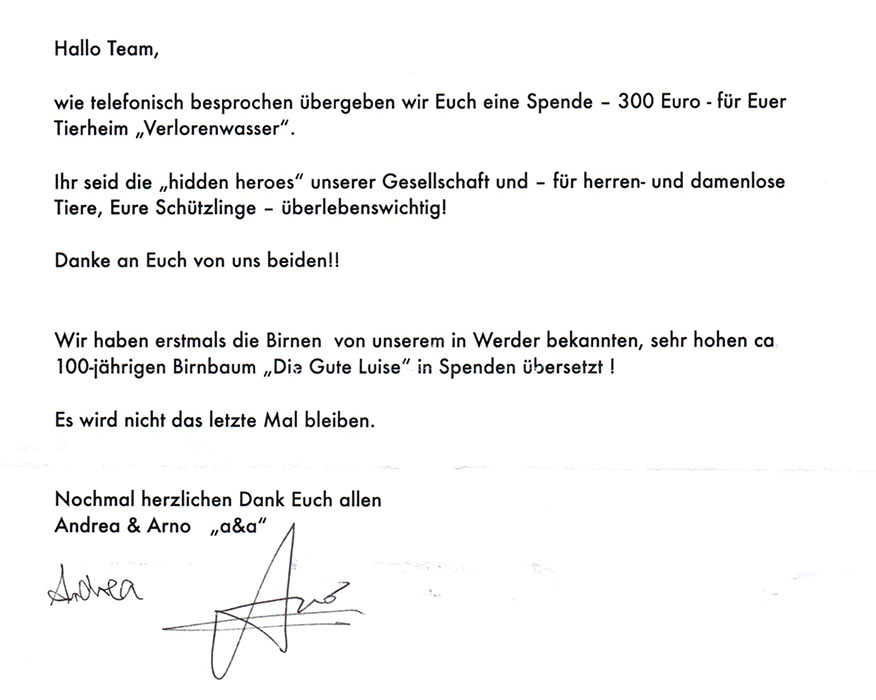 Eine ganz besondere Spende erhielten wir aus Werder.