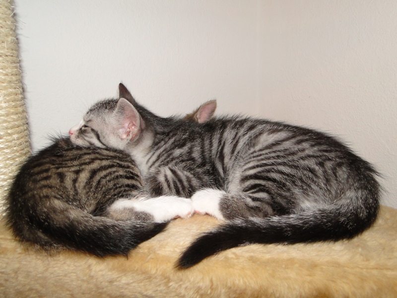 Leider sind die Kleinen nicht vom Katzenschnupfen verschont geblieben. Aber so ist es im Leben leider nunmal und läßt sich nicht verhindern. Letzte Woche gab es Anzeichen dafür und es ging ab zum Tierarzt. Sie niesten und die Augen wiesen einen Ausfluss auf. Es war noch nicht schlimm - dennoch haben sie die ersten Spritzen über sich ergehen lassen müssen.