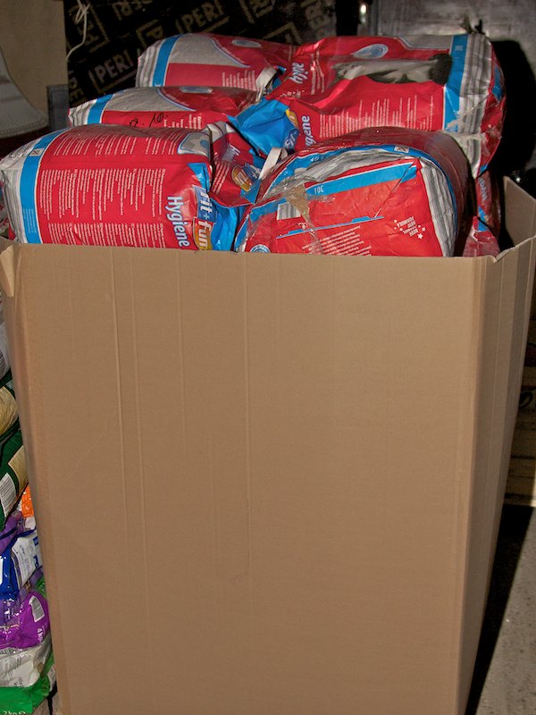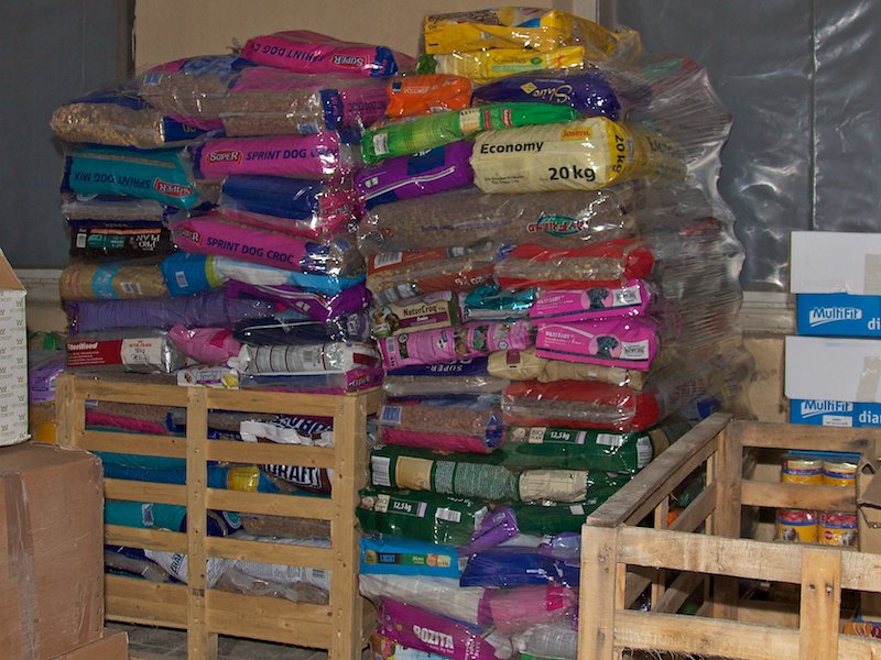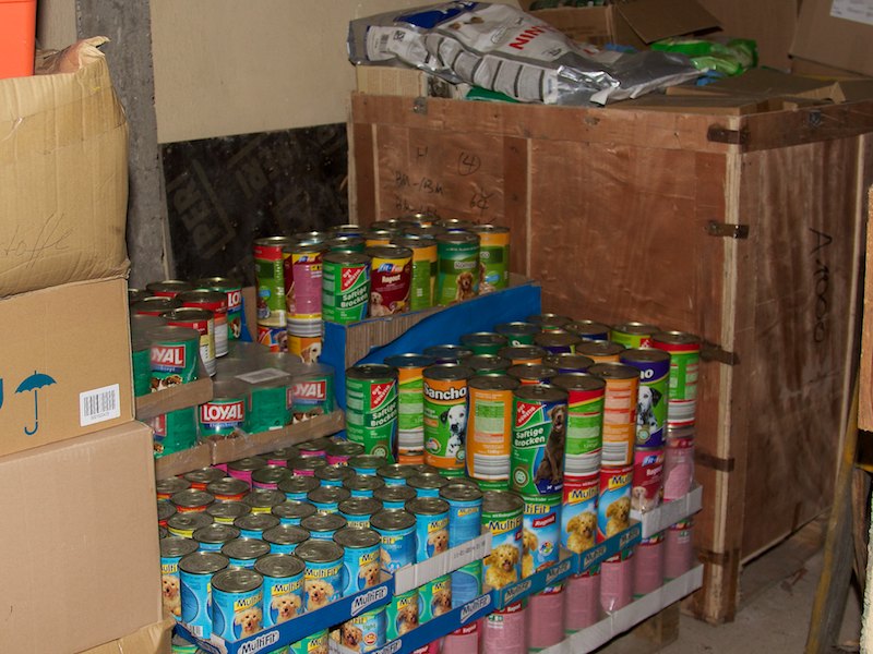 Ein befreundetes Tierheim hat bereits ein paar Tonnen Futter gespendet. Auch Privatleute haben schon Pakete mit Futter, Werkzeug und anderen Sachspenden geschickt. Waschmaschinen und Kühlschränke sind eingetroffen. 5 Tonnen haben wir bereits zusammen. Es fehlen noch 17 Tonnen (also 17.000 kg).