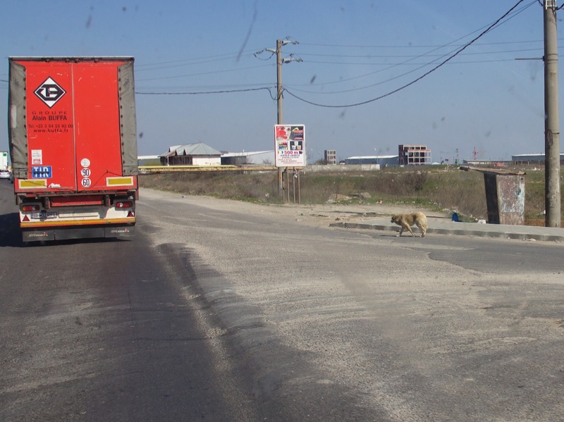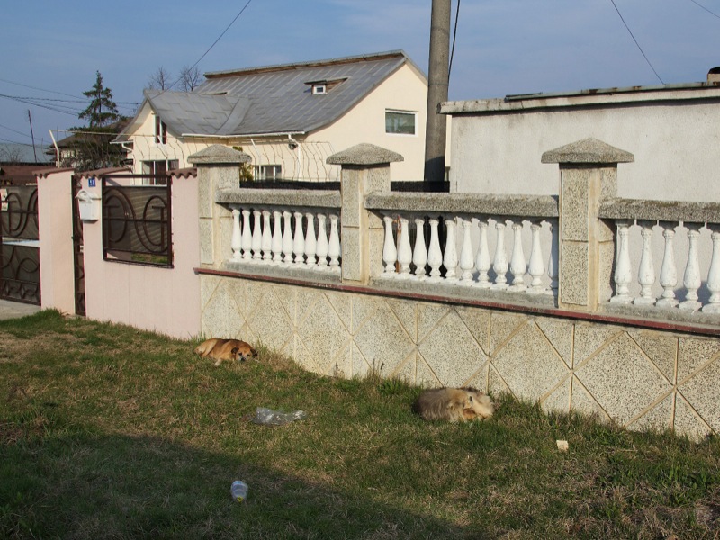 Auf der Fahrt von unserem Hotel in der Stadt Pitesti zur Smeura sahen wir diverse Hunde auch in der Stadt. Urspünglich dachten wir, dass wir gar keine Straßenhunde mehr sehen würden. Besonders am Stadtrand liegen vor Grundstücken diverse Hunde. Sie scheinen aber dorthin zu gehören.