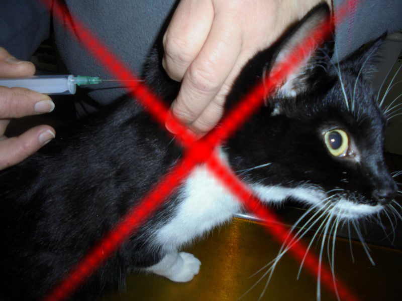 Deswegen sollte als Injektionsort die seitliche Bauchwand, die Kniefalte oder das Hinterbein gewählt werden. Dort können eventuell entstehende Tumore viel besser entfernt werden.