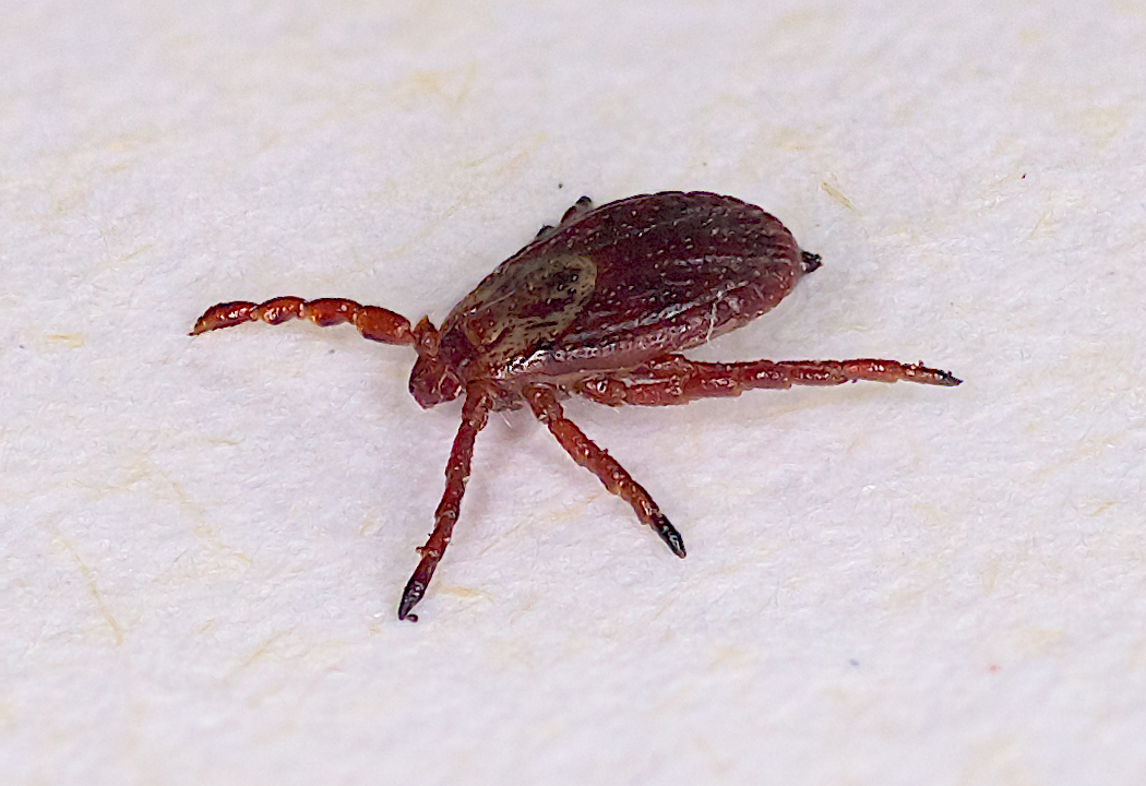 Diese fette Zecke ist vollgesogen mit dem Blut eines Hundes. Während des Saugvorganges hat sie evtl. Borreliose-Erreger in den Körper des Hundes übertragen.