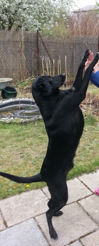 Trotzdem dauerte es knapp 6 Monate bis er zu einem richten Labrador-Mix wurde. Jetzt ist er es: nur Fressen, Fressen, Fressen im Kopf.