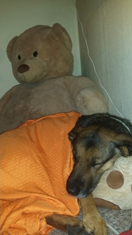 Maja wollte ganz liebe Grüße bestellen und euch sagen, das sie nun die 2. Woche bei uns ist und es kommt uns allen so vor als ob sie nie wo anders war :) Das Herz vom Herrchen hat sie im Sturm erobert. Alle anderen wickelt sie schnell um die Pfoten ;) Sie ist nun schon die Mutti in unserem kleinen Rudel und passt auf, dass alle ganz brav sind. Bei den Gassirunden macht die Lady allen anderen Feuer unter den Hintern und spornt zum Spielen an. Ihr Körbchen mag sie nicht so sehr, dafür benutzt sie lieber Frauchens großen Teddy :) Sie hatte zwar eine schwere Aufgabe, da sie in große Pfotenabdrücke treten sollte, jedoch hat sie es jetzt schon geschafft ;) und sie freut sich darauf euch alle wieder zu sehen, jedoch dann auch wieder mit nach Hause zu kommen :)