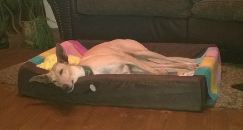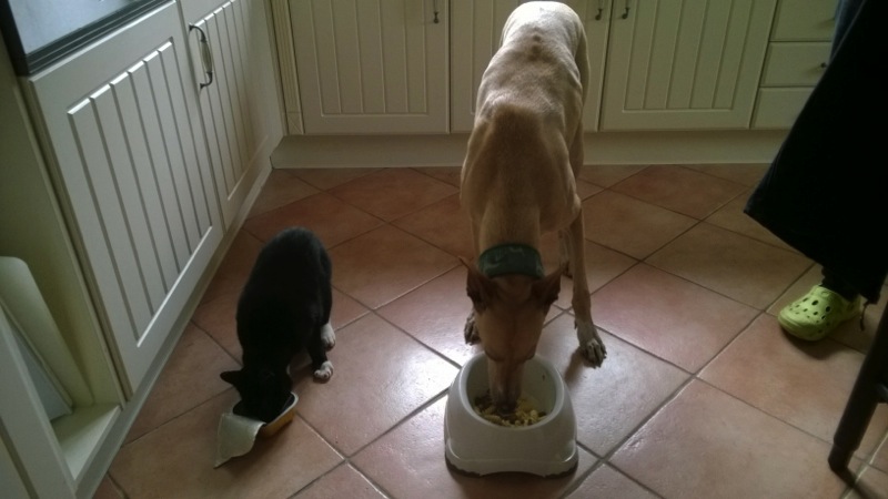 03"Hallo liebe Mitarbeiter, hier ein kurzer "Ankommbericht" von dem Goldstück..... Problemlos und dankbar für jede Zuwendung kam Amara bei uns zuhause an. Selbstverständlich nahm sie ihr Körbchen an. Orientiert sich viel an Cato, unserem Schäferhund. Unseren schwarzen Kater findet sie cool. Er sie übrigens auch. Die beiden Plüschrassekatzen.... Die sind so doof, die müssen erstmal angeblafft werden. Grins, aber auch das kriegen wir irgendwann hin. Unsere erste Begegnung mit Rehen hatten wir auch schon. Zum Glück ohne Probleme.  Obwohl die nur ca 5 Meter von uns entfernt auftauchten. Sie mag sich wohl erstmal nur von der Schokoseite zeigen. Das wunde Bäuchlein sieht langsam besser aus. Hat eine Tempurmatratze als Körbchen bekommen. Da drückt dann nix mehr.