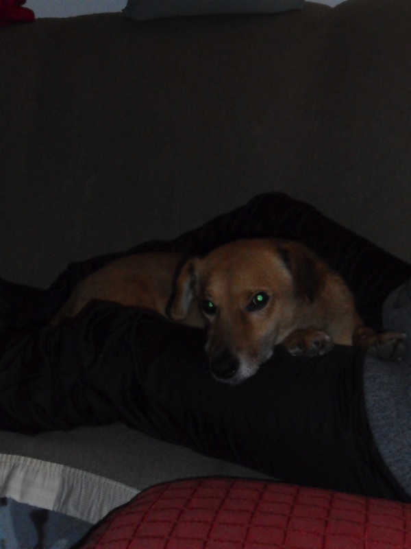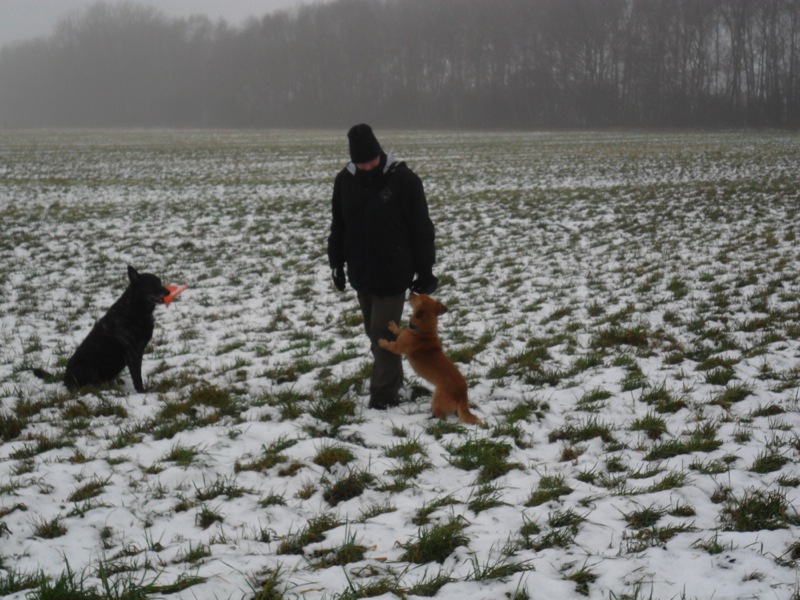 Die beiden Frauchens sind toll. Mit denen kann man prima kuscheln. Mein großer Stiefbruder und ich kommen uns auch langsam näher. Und draußen rumtollen ist klasse. Aber das mit dem Gehorsam ist doof. Wozu sonst habe ich denn einen Dickkopf? Später mehr.