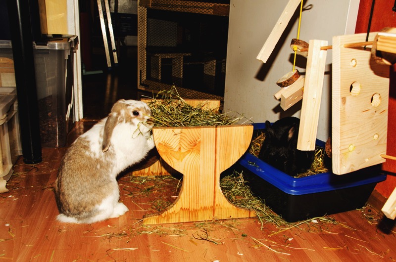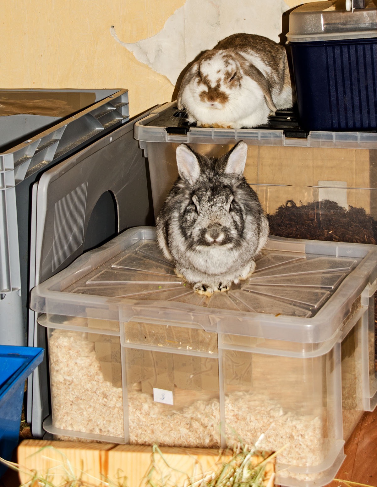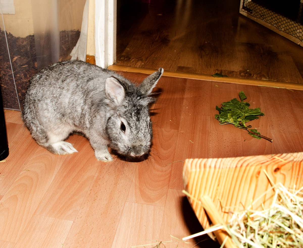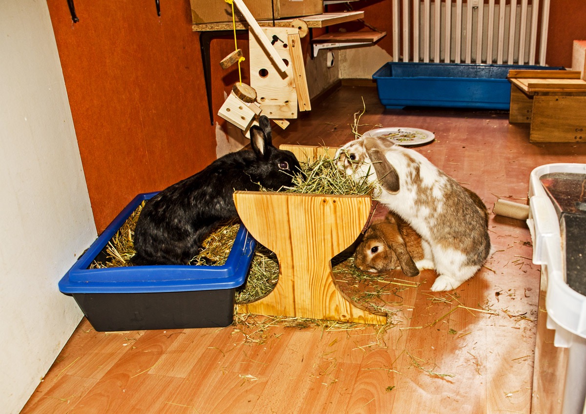 Sie wird sehr oft von Finny heftig gejagt. Manchmal braucht Finny nur in einer ganz bestimmten Art Silva anzuschauen, und schon bringt Silva sich in Sicherheit. Das ist im Kaninchenhaus. Da wird sie dann in Ruhe gelassen.