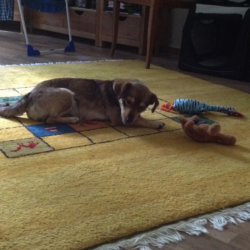 Spielzeug. Aber vor allem einen Teppich ganz für mich allein. Der liegt im Schlafzimmer,