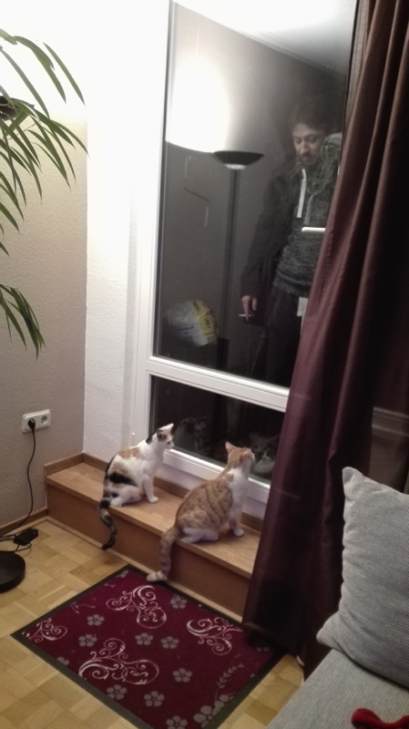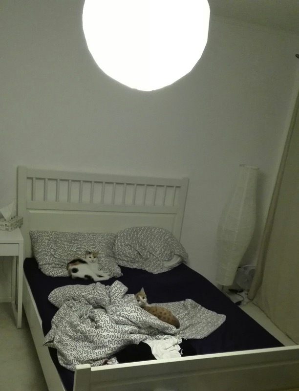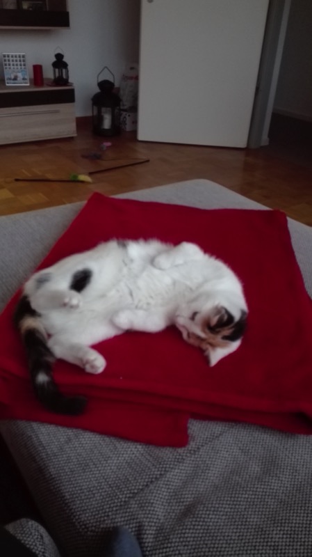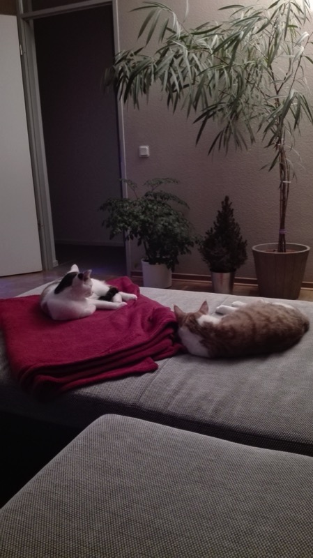 Sunny ist weiterhin recht schmusig und schnurrt bei Streicheleinheiten gemütlich vor sich hin. Luna lässt sich nur über den Rücken streicheln wenn es Futter gibt (was schon ein Fortschritt ist (Anfangs war das gar nicht möglich)), ansonsten heißt die Devise "Don´t touch please". Sie ist aber immer in unserer Nähe und verbringt auch gerne den einen oder anderen Abend mit uns auf der Couch, aber natürlich mit einem gesunden Abstand :)